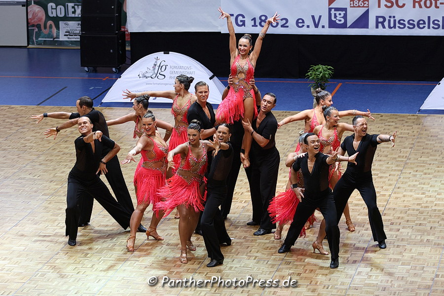 Aber auch am Sonntag gab es ein Formationsturnier in den lateinamerikanischen Tänzen in Rüsselsheim. Hier traten die Teams der Oberliga Süd TBW an, bei dem mit dem B-Team der Formationsgemeinschaft Hofheim / Rüsselsheim / Fischbach auch ein hessisches Team – quasi als Gast – mittanzen darf. Sie konnten sich klar für das große Finale qualifizieren und belegten dort am Ende – wie in den Turnieren zuvor – den dritten Platz hinter den A-Teams aus Besigheim und Karlsruhe.