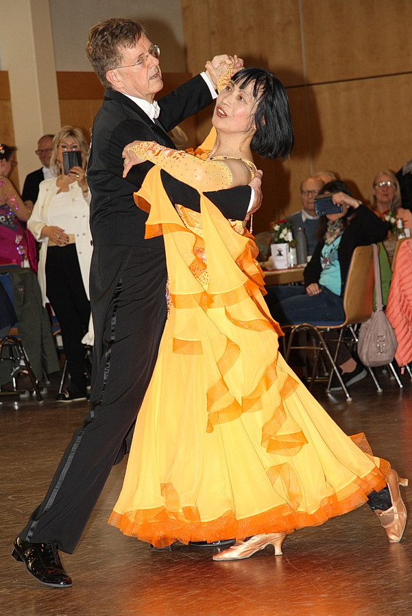 Eine sehr klare Angelegenheit war die Ermittlung des Landesmeisters in der A-Klasse der Standardsenioren IV. 24 von 25 möglichen Einsen vereinigten Jürgen und Sabine Diefenbach aus Frankfurt im Finale auf sich und waren damit unangefochtene Gewinner der Goldmedaille. Auf den weiteren Medaillenplätzen landeten Wolfgang und Renate Eisenhart für Silber und Rainer und Gabriele Storch für das bronzefarbene Edelmetall.